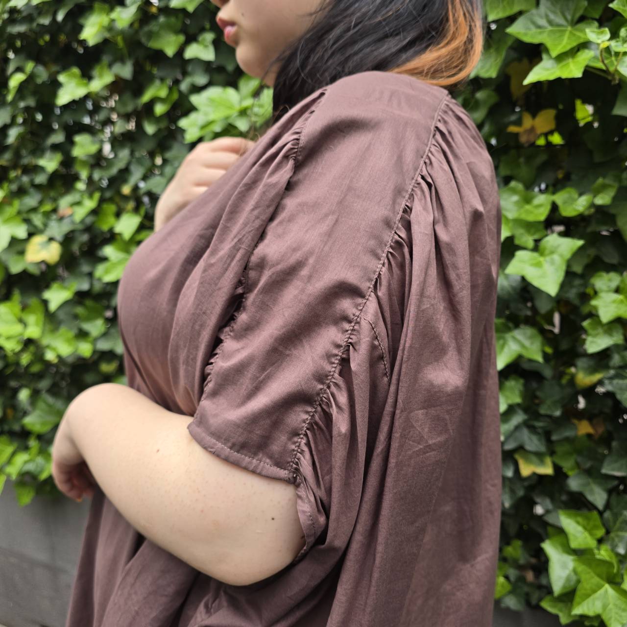 このギャザーオーバーブラウスは、前後2wayで楽しめる一着です。どちらのスタイルでも美しいシルエットを演出し、ゆったりとしたフォルムが魅力的。リラックス感のある着心地は、日常のお出かけやリラックスタイムにもぴったりです。