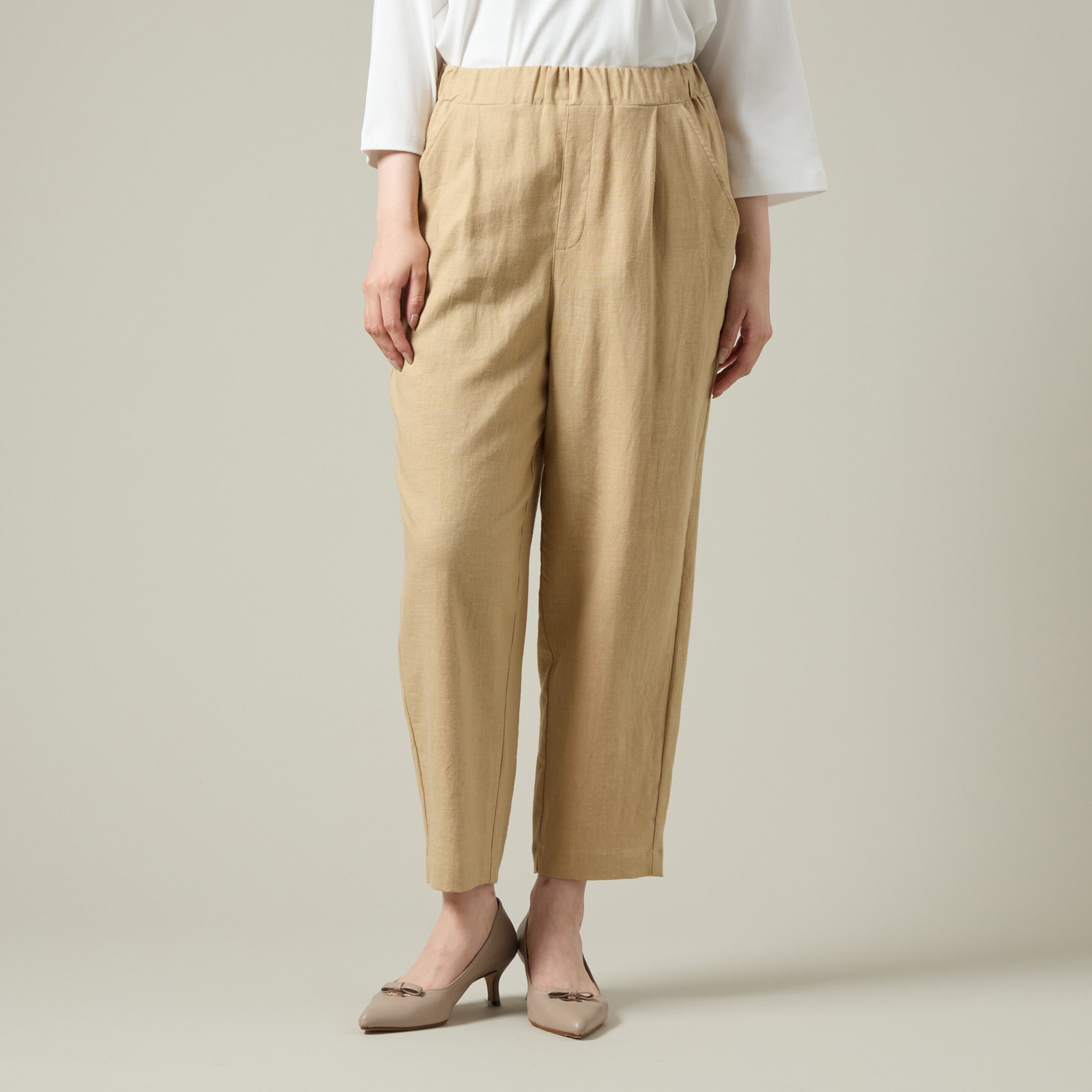 タックテーパードパンツ、オフィスカジュアルからカジュアルまで幅広く活躍する万能ボトムスです。