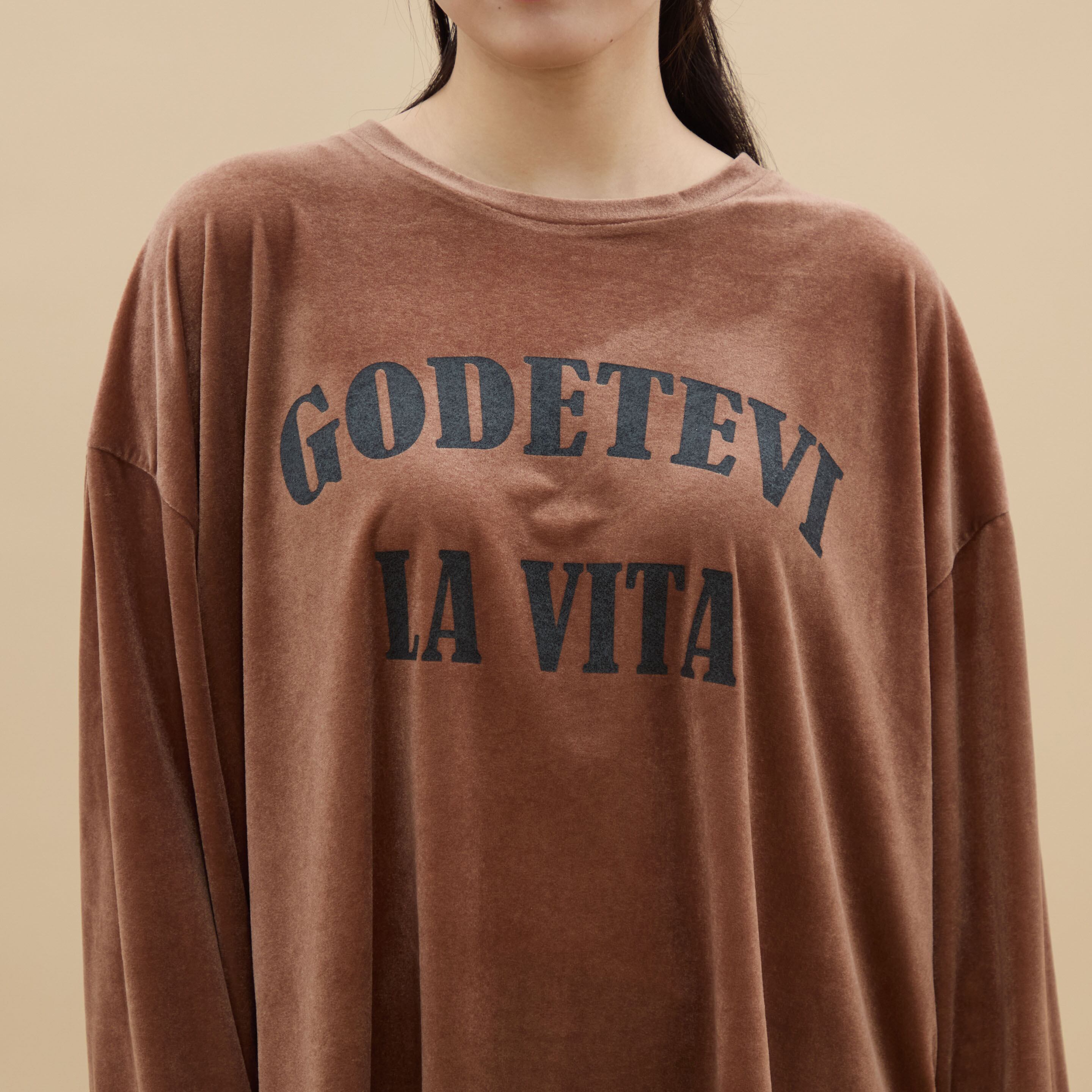 ベロアロゴ入り長袖カットソーは、柔らかいベロア素材を使用し、リラックスした着心地を提供する一枚です。